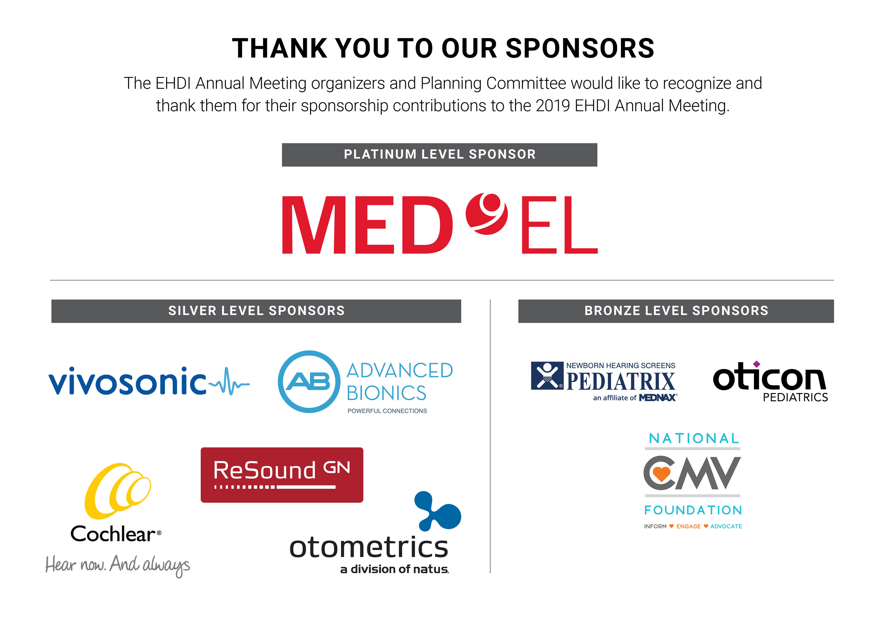 The organizers of the 2019 Early Hearing Detection and Intervention (EHDI) Annual Meeting invite you to become a supporter of the nation's premier educational and networking event for EHDI professionals through sponsorship.